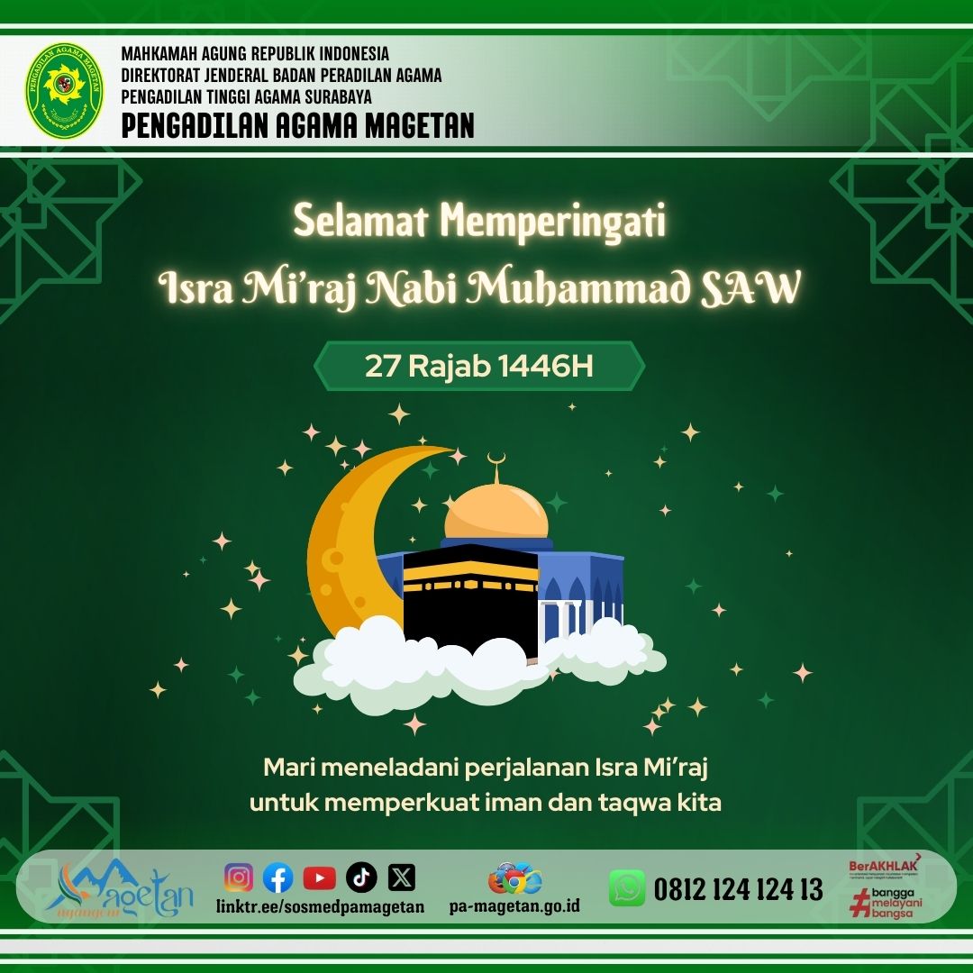 Selamat Memperingati Isra Mi'raj Nabi Muhammad SAW (27 Rajab 1446 H) Written by Admin on 26 January 2025. Written by Admin on 26 January 2025. Hits: 478