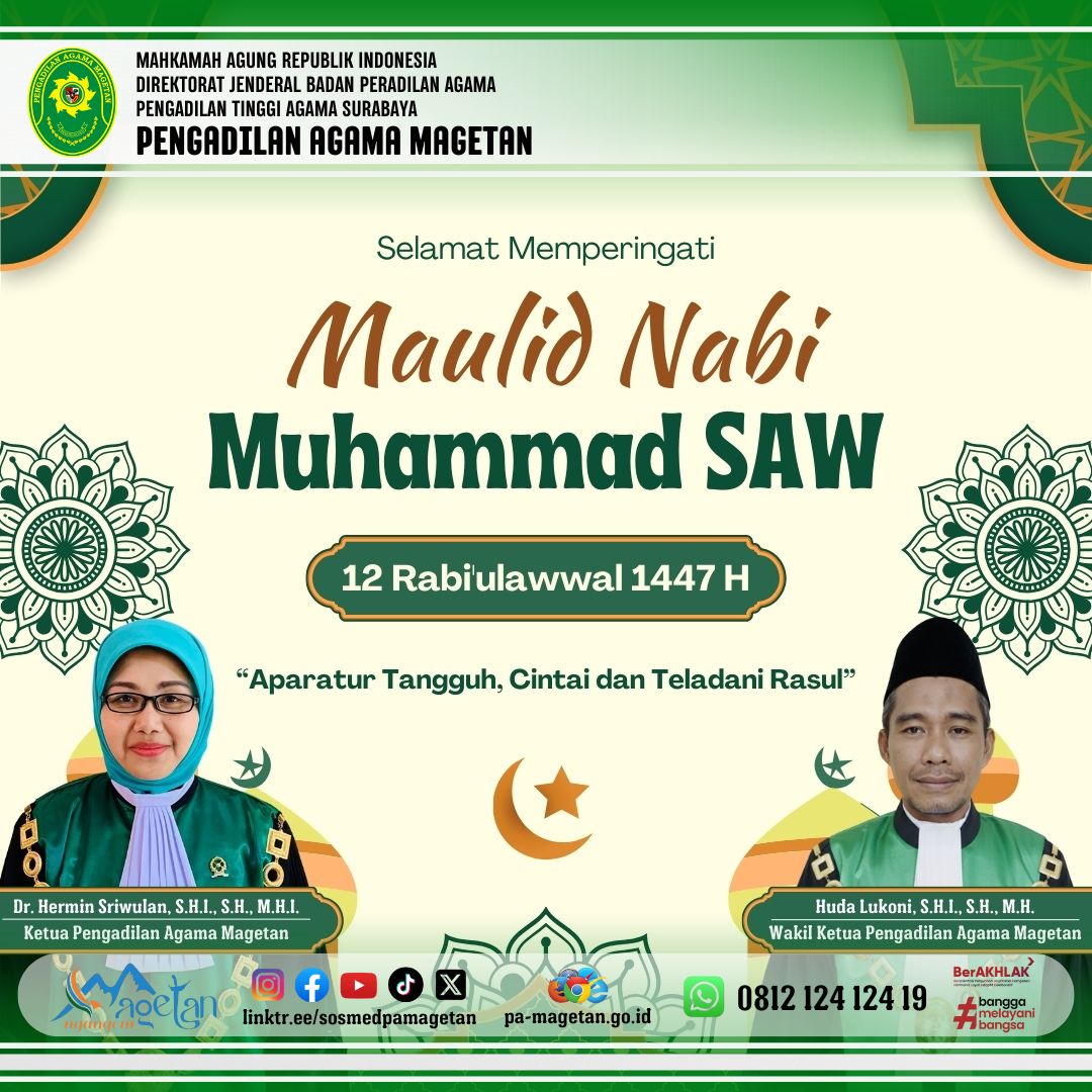 Selamat Memperingati Maulid Nabi Muhammad SAW (12 Rabi'ul Awwal 1447 H) Written by Admin on 05 September 2025. Written by Admin on 05 September 2025. Hits: 339