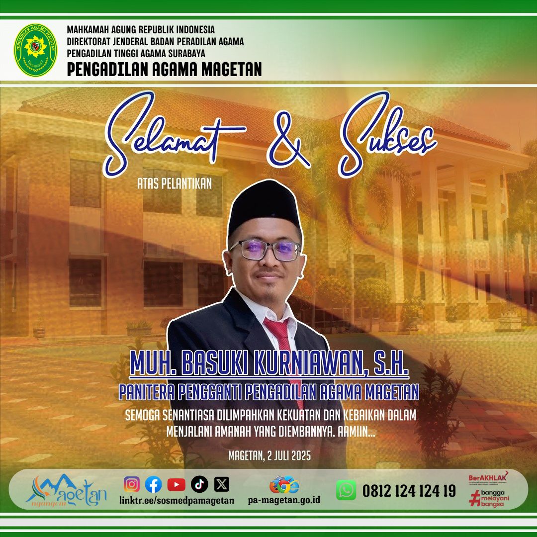 Selamat & Sukses Muh. Basuki Kurniawan, S.H Written by Admin on 02 July 2025. Written by Admin on 02 July 2025. Hits: 314