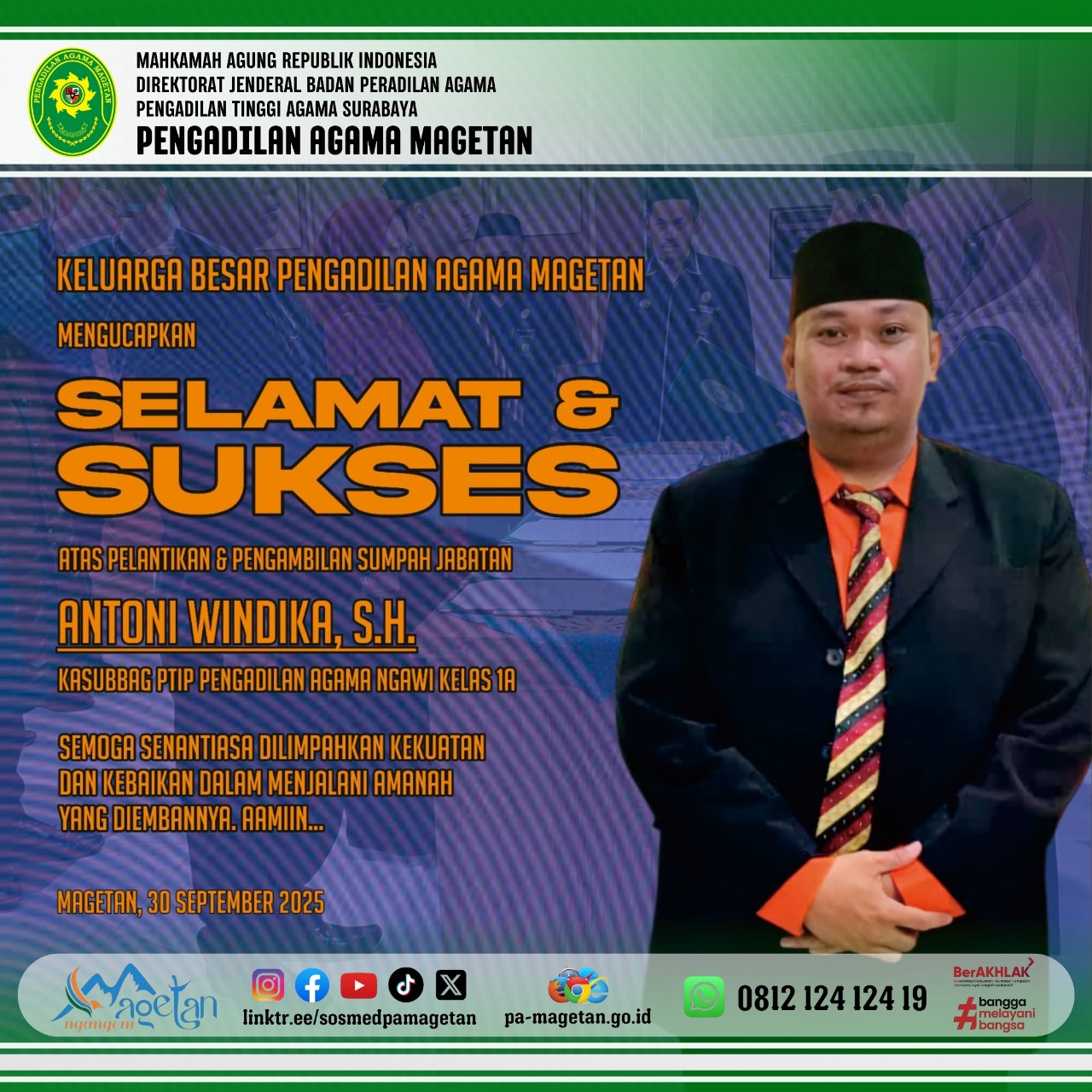Selamat & Sukses Antoni Windika, S.H. Written by Admin on 30 September 2025. Written by Admin on 30 September 2025. Hits: 292