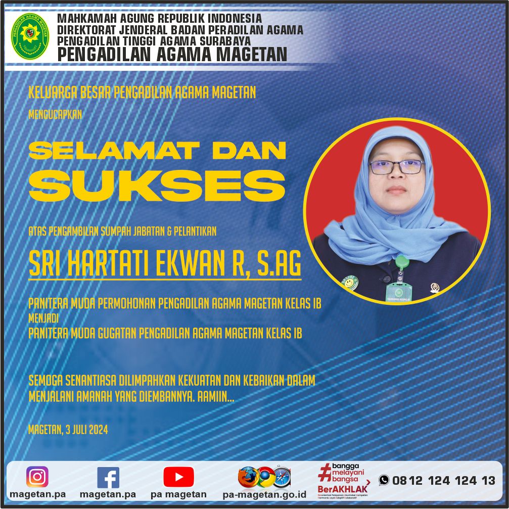 Selamat & Sukses Sri Hartati Ekwan R, S.Ag. Written by Admin on 02 July 2024. Written by Admin on 02 July 2024. Hits: 545