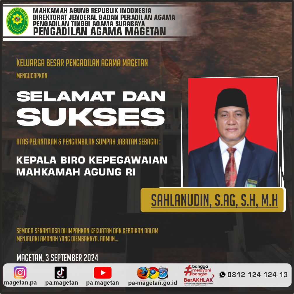 Selamat & Sukses Bp. Sahlanudin, S.Ag., S.H, M.H. Written by Admin on 03 September 2024. Written by Admin on 03 September 2024. Hits: 585