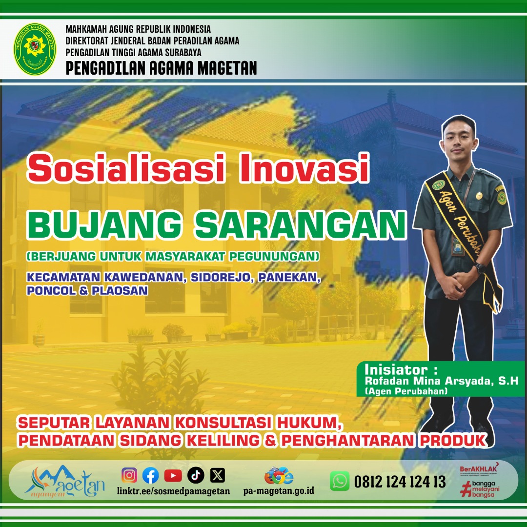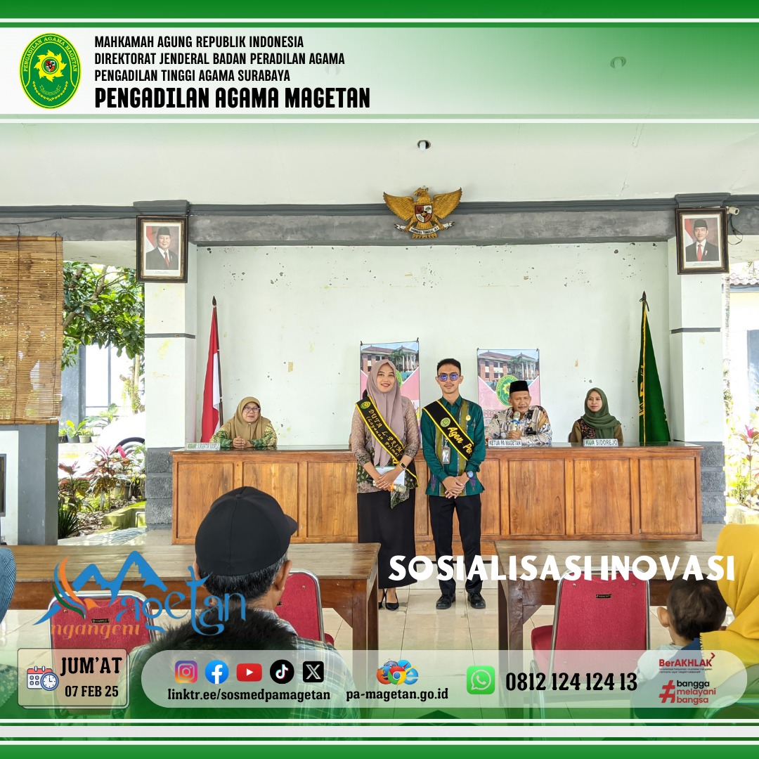 Sosialisasi ini merupakan upaya dari Pengadilan Agama Magetan dalam memberikan pelayanan yang prima kepada masyarakat di daerah pegunungan di Kabupaten Magetan, khususnya Kecamatan Kawedanan, Sidorejo, Panekan, Poncol & Plaosan, berkenaan dengan Layanan Konsultasi Hukum, Pendataan Sidang Keliling, & Penghantaran Produk Pengadilan kepada para pencari kedilan. Inovasi ini merupakan gebrakan inovasi di awal Tahun 2025 yang telah dicanangkan oleh Pengadilan Agama Magetan dalam hal mendongkrak pelayanan dan prestasi penilaian kinerja di tahun ini.