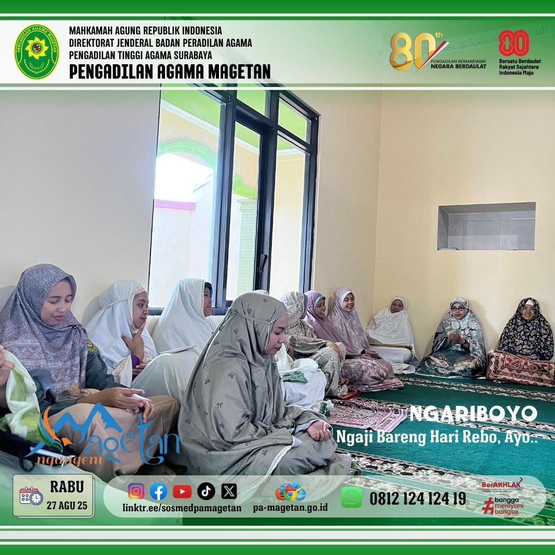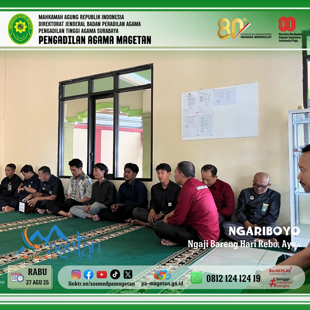 Magetan | pa-magetan.go.id | Pada hari Rabu, 27 Agustus 2025. kultum rutin dilaksanakan di Mushola Al-Mahkamah Pengadilan Agama Magetan. Kegiatan ini mengangkat tema "Macam Kerusakan Lisan dan hati" sebagai bahan renungan bagi seluruh jamaah. Acara dihadiri oleh para Aparatur Peradilan yang antusias mengikuti kajian. Tausiyah tersebut disampaikan secara langsung oleh Bapak Dr.Helmy Ziaul Faud S.H.I.,S.H.,M.H