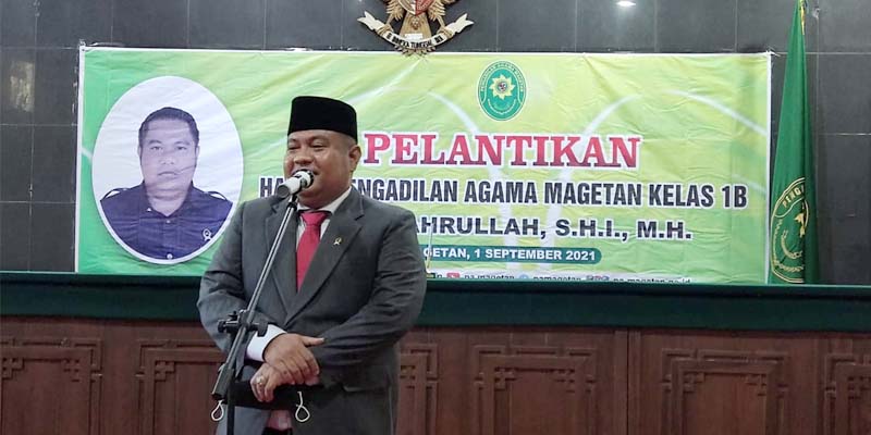 Bertempat diruang Sidang Pengadilan Agama Magetan, pelantikan hakim ini dihadiri oleh Wakil Ketua, Panitera dan Sekretaris Pengadilan Agama Magetan, serta karyawan dan Karyawati Pengadilan Agama Magetan. Adalah YM. Syahrullah, S.HI., MH, yang sebelumnya menjabat sebagai Hakim Pengadilan Agama Dumai, mulai 1 september 2021 Resmi dilantik sebagai Hakim Pengadilan Agama Magetan.