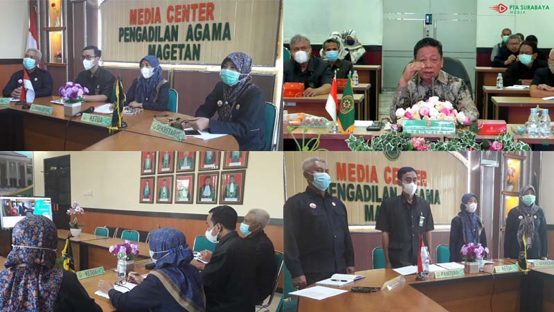 Magetan | pa-magetan.go.id | Ketua, Wakil Ketua, Panitera dan Sekretaris Pengadilan Agama Magetan mengikuti Rapat Pembinaan Oleh Direktur Jenderal Badan Peradilan Agama Mahkamah Agung Republik Indonesia secara Virtual dari Ruang Media Center Pengadilan Agama Magetan, Rabu, 15 September 2021.