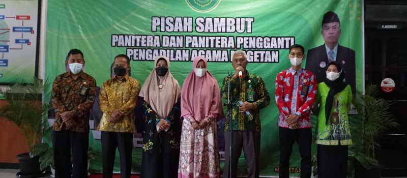 Usai pelantikan panitera, acara dilanjutkan dengan perpisahan pegawai Pengadilan Agama Magetan yang baru dimutasi, yaitu Bpk. Syaiful Arifin, SH yang mutasi ke Pengadilan Agama Kabupaten Madiun, Bpk. Tarmuji, SH yang mutasi ke Pengadilan Agama Wonogiri, Bpk. Mauludin, SH ke Pengadilan Agama Purwokerto, dan Bpk. Lucky Aziz Hakim yang mutasi ke Pengadilan Agama Ngawi.