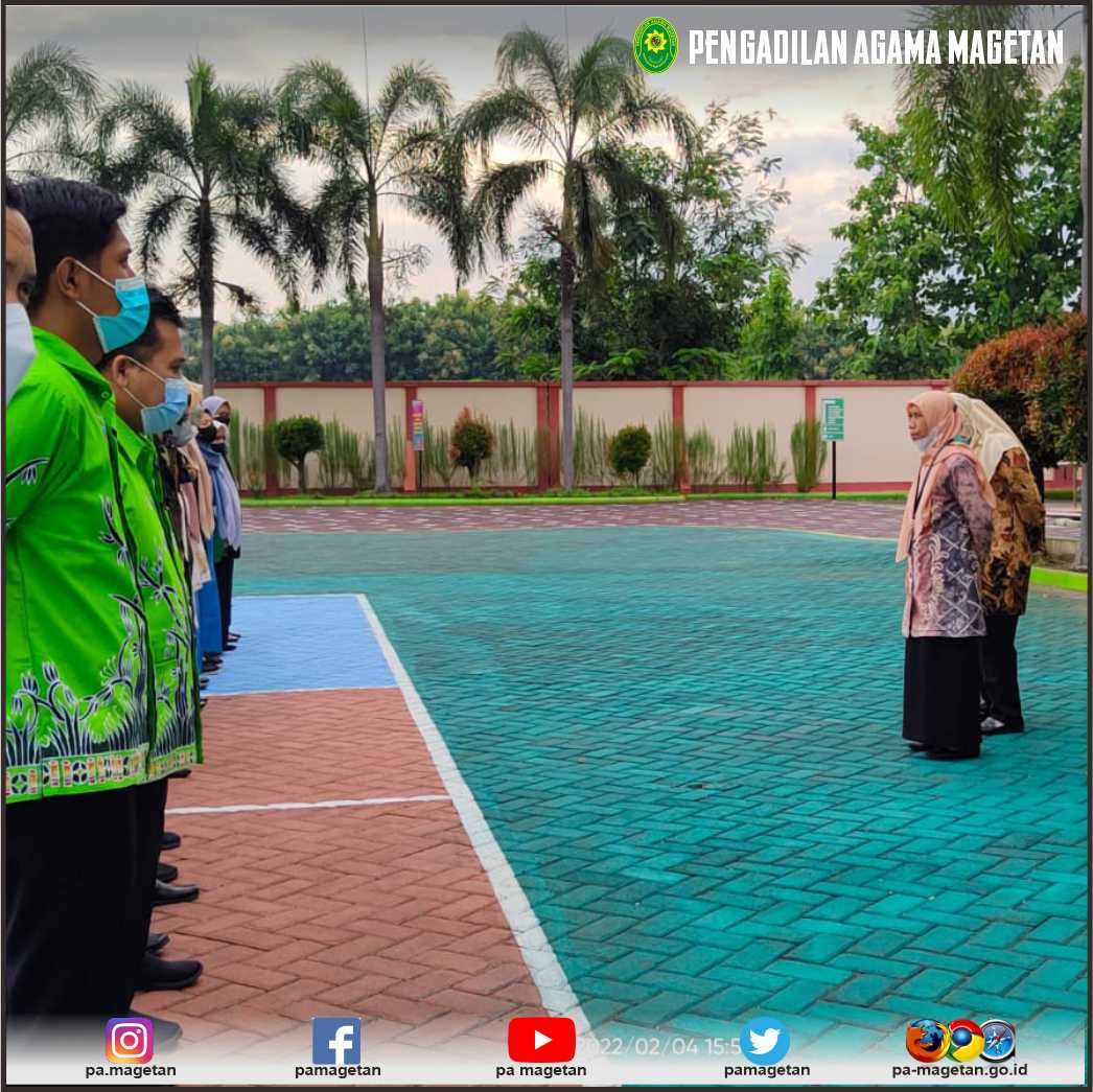 Magetan | pa.magetan.go.id | Kegiatan Rutin Apel Jum'at Sore tanggal 04 Februari 2022 dipimpin oleh Ketua Pengadilan Agama Magetan YM Ibu. Eny Rianing Taro, S.Ag., M.Sy yang diikuti oleh seluruh pegawai Pengadilan Agama Magetan.