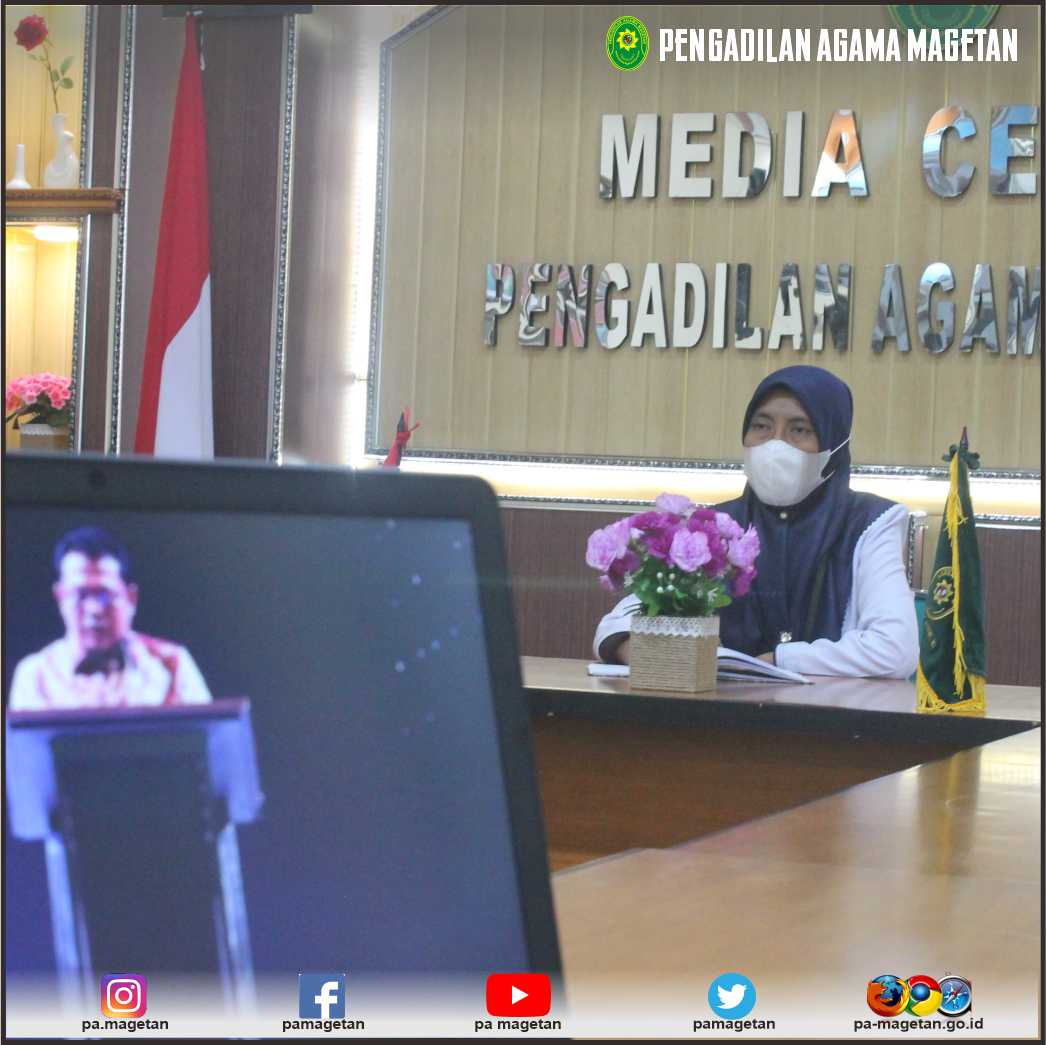 Bertempat diruang Media Center Pengadilan Agama Magetan, Ketua Pengadilan Agama Magetan mengikuti Penyerahan Hasil Tindak Lanjut Pemeriksaan BPK dan Pembukaan Konsolidasi Laporan Keuangan Tahunan Tahun 2021 secara virtual. Kegiatan ini dilaksanakan di Hotel Inter Continental Bandung Dago Pakar.