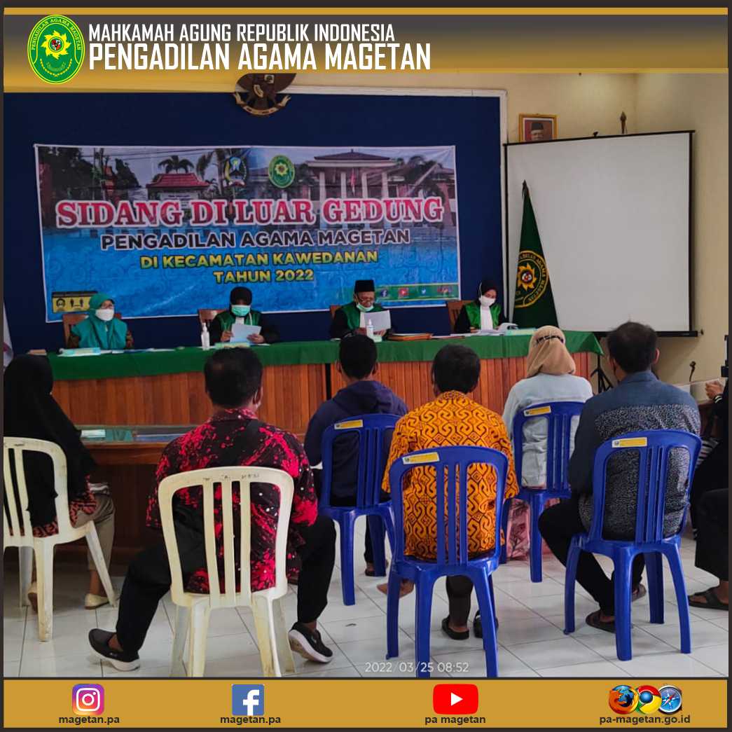 Magetan | pa-magetan.go.id | Pengadilan Agama Magetan kembali melaksanakan Sidang Diluar Gedung Periode ke-2 di Kecamatan Kawedanan. Pelaksanaan kegiatan kali ini adalah kegiatan lanjutan yang sudah dilaksanakan pada tanggal 18 Maret 2022 yang lalu. Beberapa proses persidangan lanjutan serta beberapa proses persidangan yang baru dilaksanakan di periode ke-2 ini. Pengadilan Agama Magetan juga menghadirikan PTSP Mobile kembali, terdapat beberapa para pencari keadilan yang dengan antusias memanfaatkan adanya PTSP Mobile ini, sehingga dapat melakukan pengambilan produk dan mencari informasi tentang proses berperkara di Pengadilan Agama Magetan.