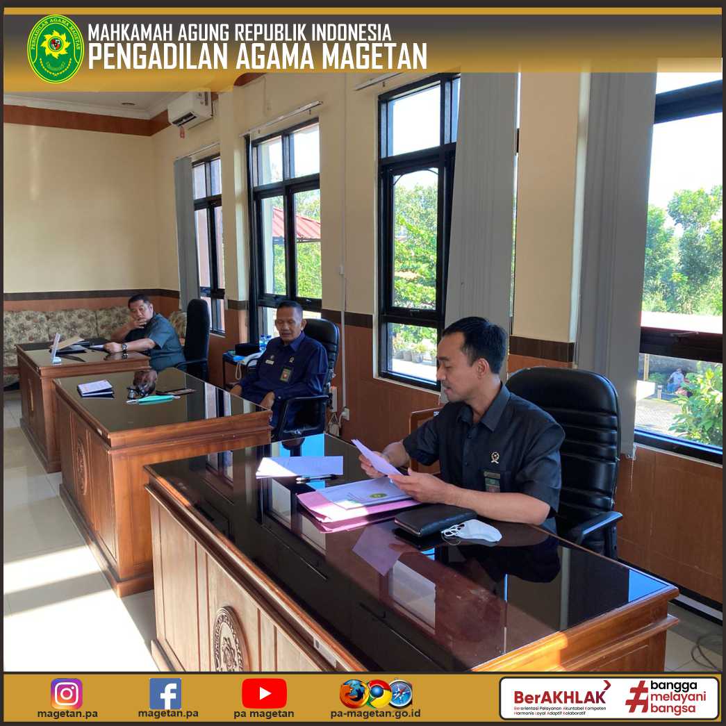 Magetan | pa-magetan.go.id | Para Hakim Pengadilan Agama Magetan melaksanakan rapat koordinasi HAWASBID (Hakim Pengawas Bidang) untuk Pengawasan Triwulan II Tahun 2022, Selasa 21 Juni 2022. Rapat yang dilaksanakan di Ruang Hakim Pengadilan Agama Magetan ini pimpin oleh Koordinator Hakim Pengawas Bidang (YM. H. Moh Muhibuddin, S.Ag, S.H, M.Si).