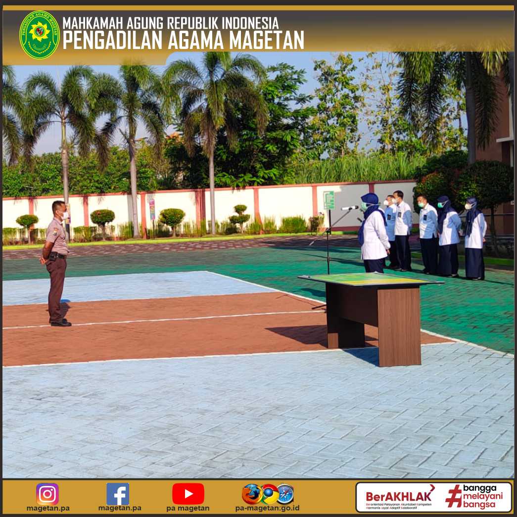 Magetan | pa-magetan.go.id | Pengadilan Agama Magetan melaksanakan kegiatan Apel Senin pagi, Apel kali ini dipimpin oleh Sekretaris Pengadilan Agama Magetan (St. Mar’atu Ulfah, S.Ag). Dalam arahannya beliau menyampaikan untuk menjadikan acuan apa yang sudah menjadi temuan pengawasan Hawasbid dan Hatiwasda. Temuan-temuan yang ada harus menjadi pengingat dalam melaksanakan kegiatan setiap harinya, yang berguna untuk kebaikan dalam pelayanan di Pengadilan Agama Magetan.