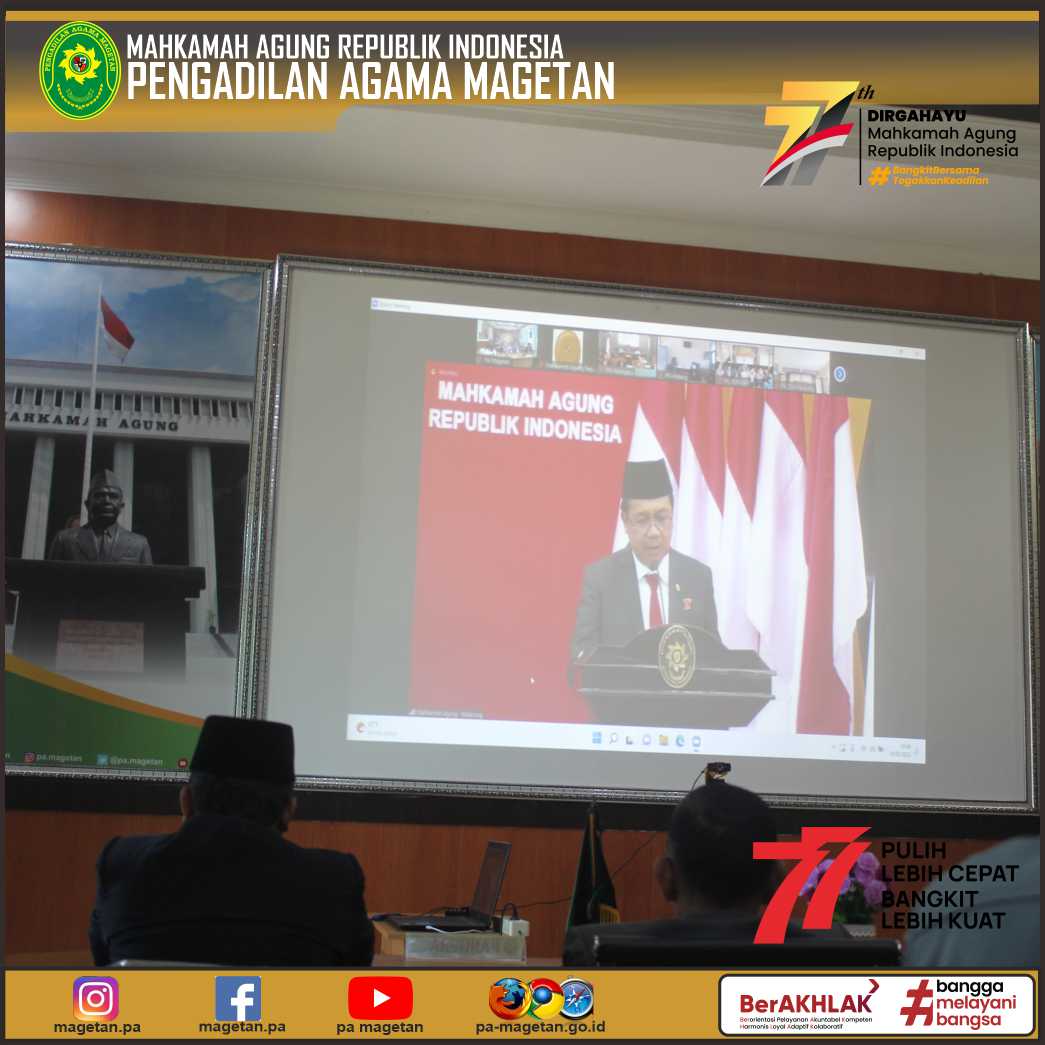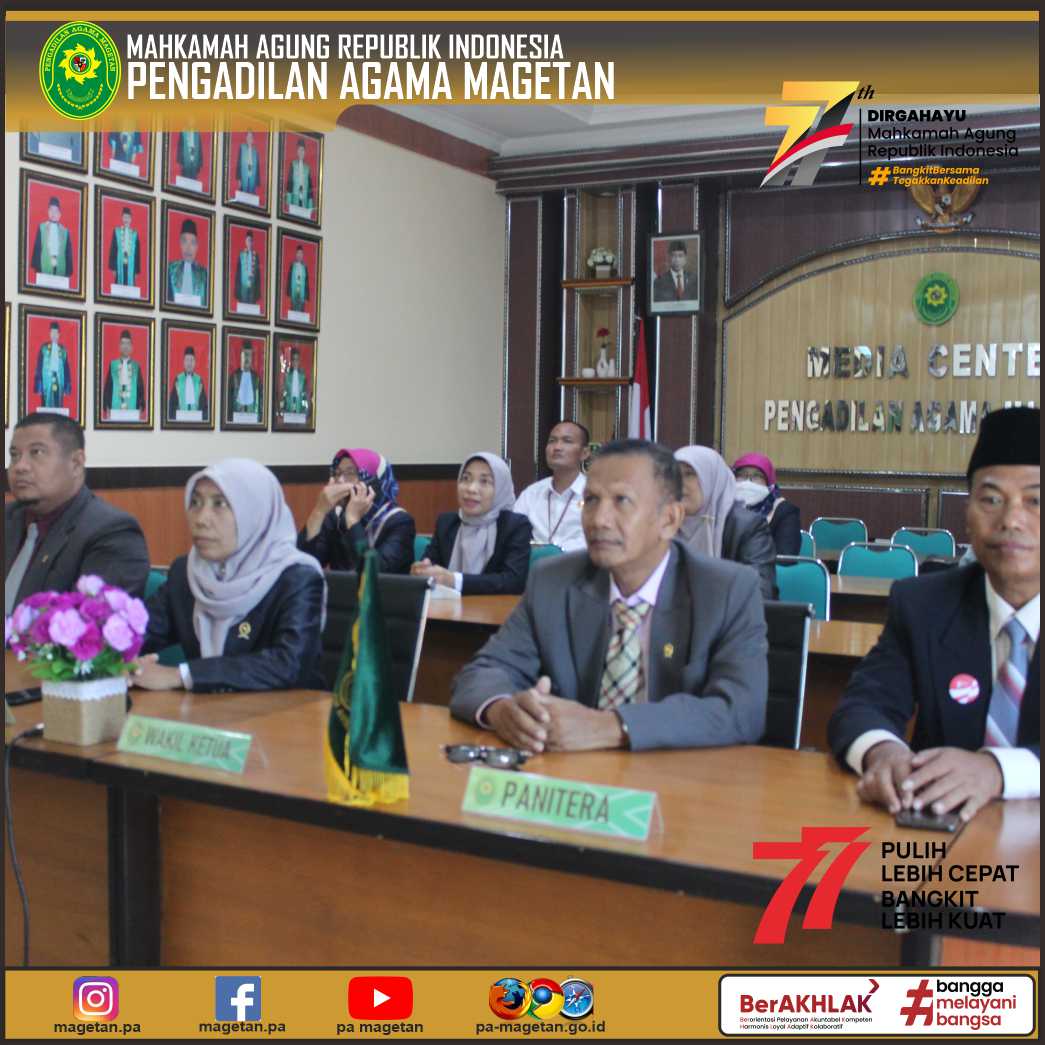 Kegiatan yang dilaksanakan dalam rangkaian kegiatan peringatan HUT Mahkamah Agung RI ke 77 di ikuti dari Media Center Pengadilan Agama Magetan.