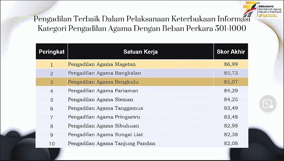 PA Magetan Raih Peringkat 1 Kategori Keterbukaan Informasi