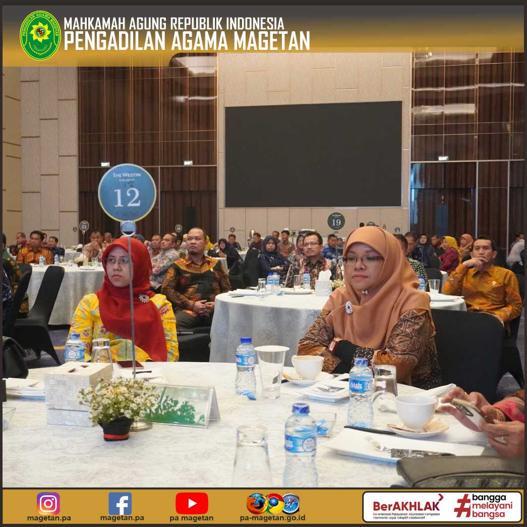 Magetan | pa-magetan.go.id | Pengadilan Agama Magetan yang diwakili oleh Ketua, Wakil Ketua, Panitera dan Sekretaris Pengadilan Agama Magetan mengikuti Pembinaan Peningkatan Manajemen Peradilan di Lingkungan Pengadilan Tinggi Agama Surabaya yang dilaksanakan di Hotel Westin Surabaya.
