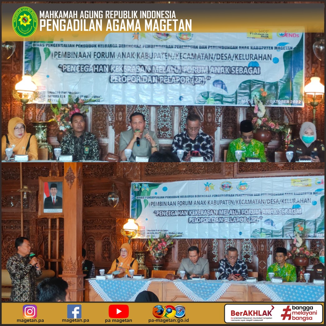 Magetan | pa-magetan.go.id | Panitera Pengadilan Agama Magetan menghadiri Acara Pembinaan Forum Anak Kabupaten/Kecamatan/Desa/Kelurahan yang diselenggarakan oleh Dinas Pengendalian Penduduk Keluarga Berencana Pemberdayaan Perempuan Dan Perlindungan Anak Kabupaten Magetan (27/10/2022)