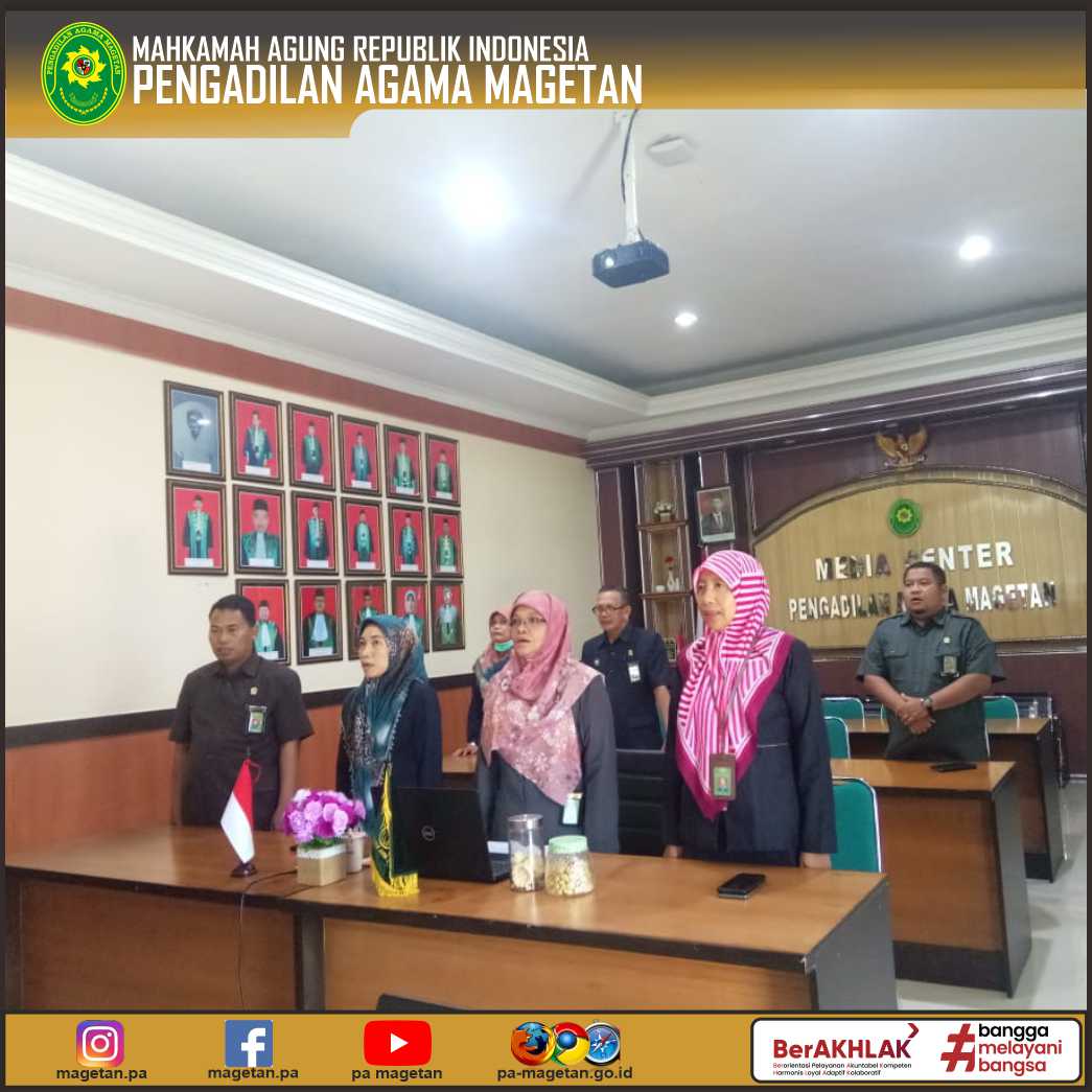 Magetan | pa-magetan.go.id | Pengadilan Agama Magetan yang diwakili oleh Ketua, Wakil Ketua, Panitera, Sekretaris dan Para Hakim mengikuti Acara Launching Aplikasi secara online dari Media Center Pengadilan Agama Magetan.