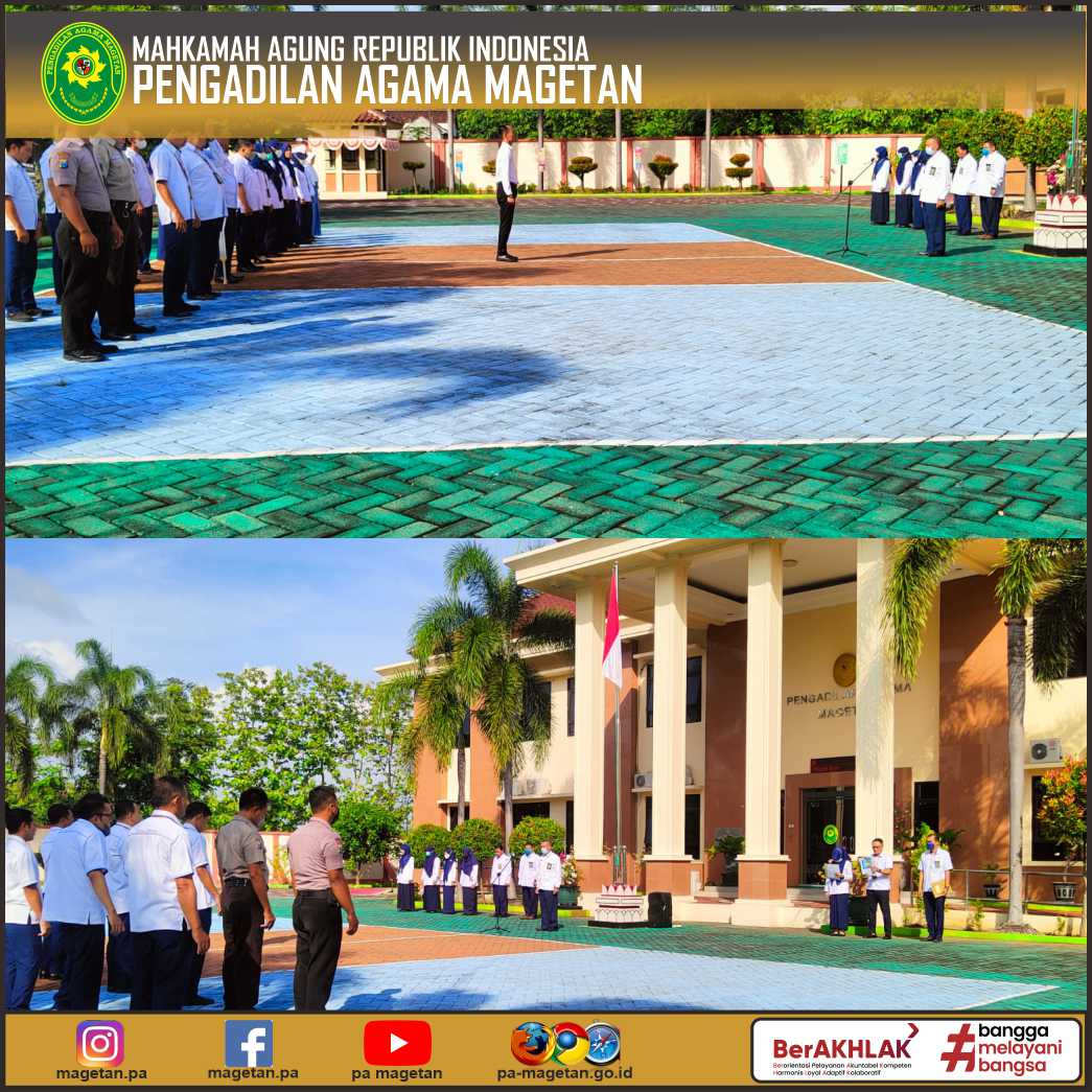 Magetan | pa-magetan.go.id | Pengadilan Agama Magetan melaksanakan kegiatan Apel Senin pagi, Apel kali ini dipimpin oleh Hakim Pengadilan Agama Magetan (YM. Dr. Drs. Sugeng, M.Hum). Dalam arahannya beliau menyampaikan arahan untuk dapat mempersiapkan Pembinaan & Pengawasan oleh Pengadilan Tinggi Agama Surabaya yang akan dilaksanakan pada hari ini.