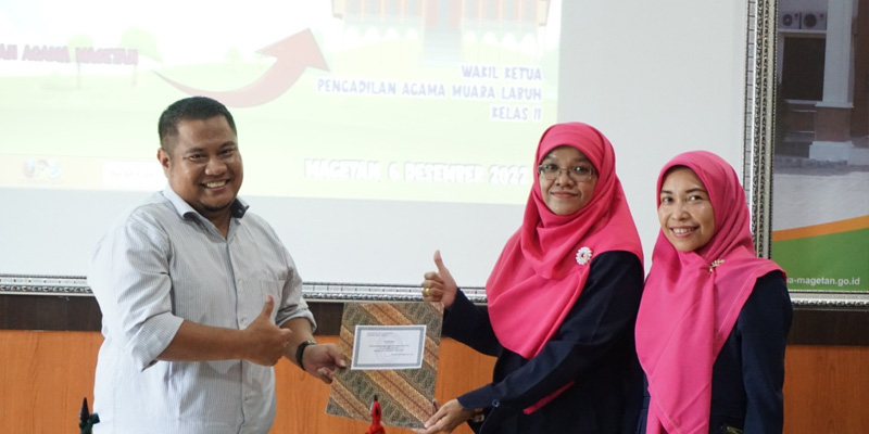 Tak ketinggalan, Ketua Pengadilan Agama Magetan (YM. Hj. Yurita Heldayanti, S. Ag. MH) juga menyampaikan rasa terimakasihnya kepada YM. Syahrullah, S.H.I., MH. Terakhir, acara ditutup dengan pemberian ucapan selamat dari seluruh karyawan dan karyawati Pengadilan Agama Magetan kepada YM. Syahrullah, S.H.I., MH.