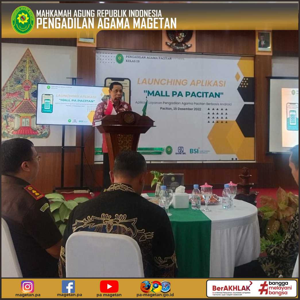 Magetan | pa-magetan.go.id | Pengadilan Agama Magetan yang diwakili Ketua, Panitera dan Sekretaris menghadiri Rapat Koordinasi Pengadilan Agama se-koordinator Madiun sekaligus Launching Aplikasi " Mall PA Pacitan " berbasis android oleh Ketua Pengadilan Tinggi Agama Surabaya (Dr. H. Bahruddin Muhammad, S.H., M.H) yang dilaksanakan di Pengadilan Agama Pacitan.