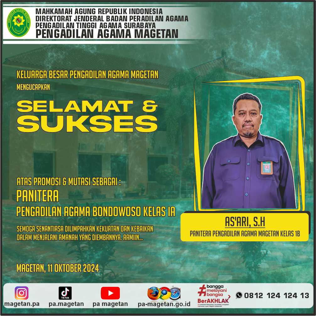 Selamat & Sukses As'ari, S.H Written by Admin on 11 October 2024. Written by Admin on 11 October 2024. Hits: 530