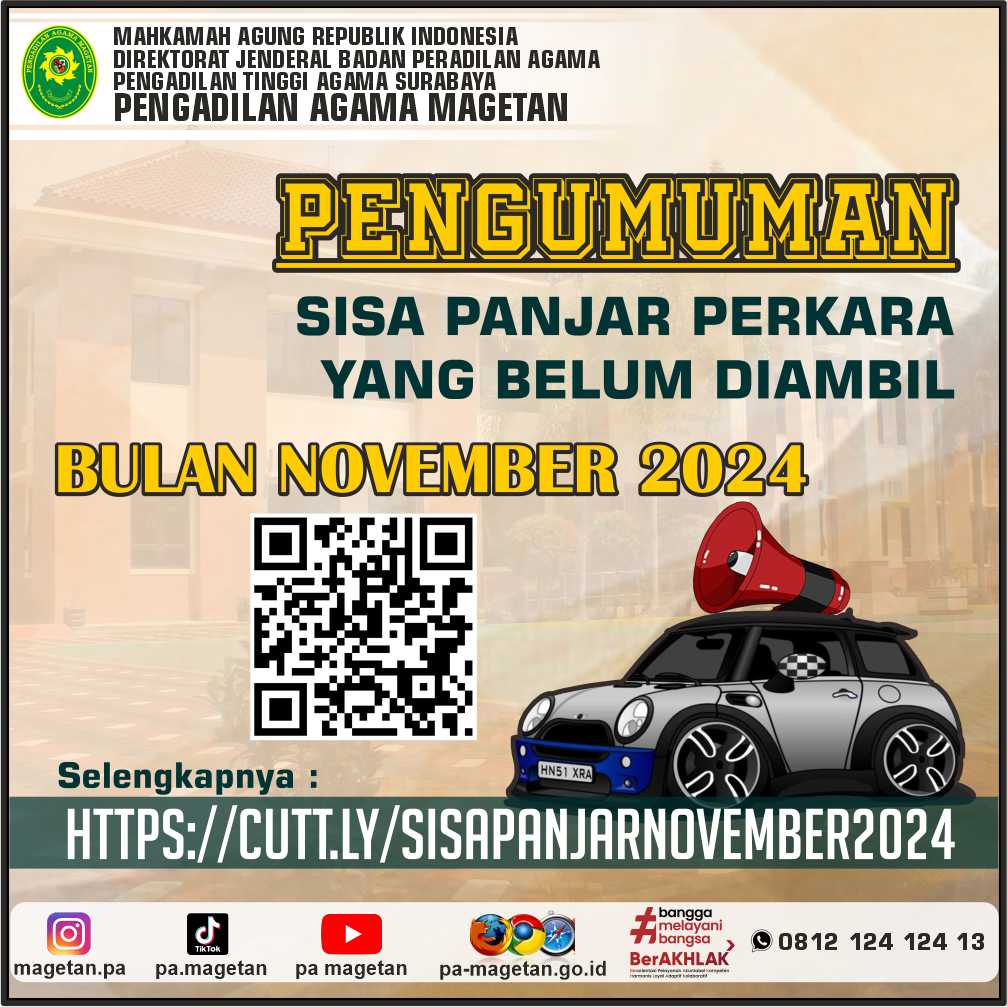 Sisa Panjar Perkara Yang Belum Diambil Bulan November 2024